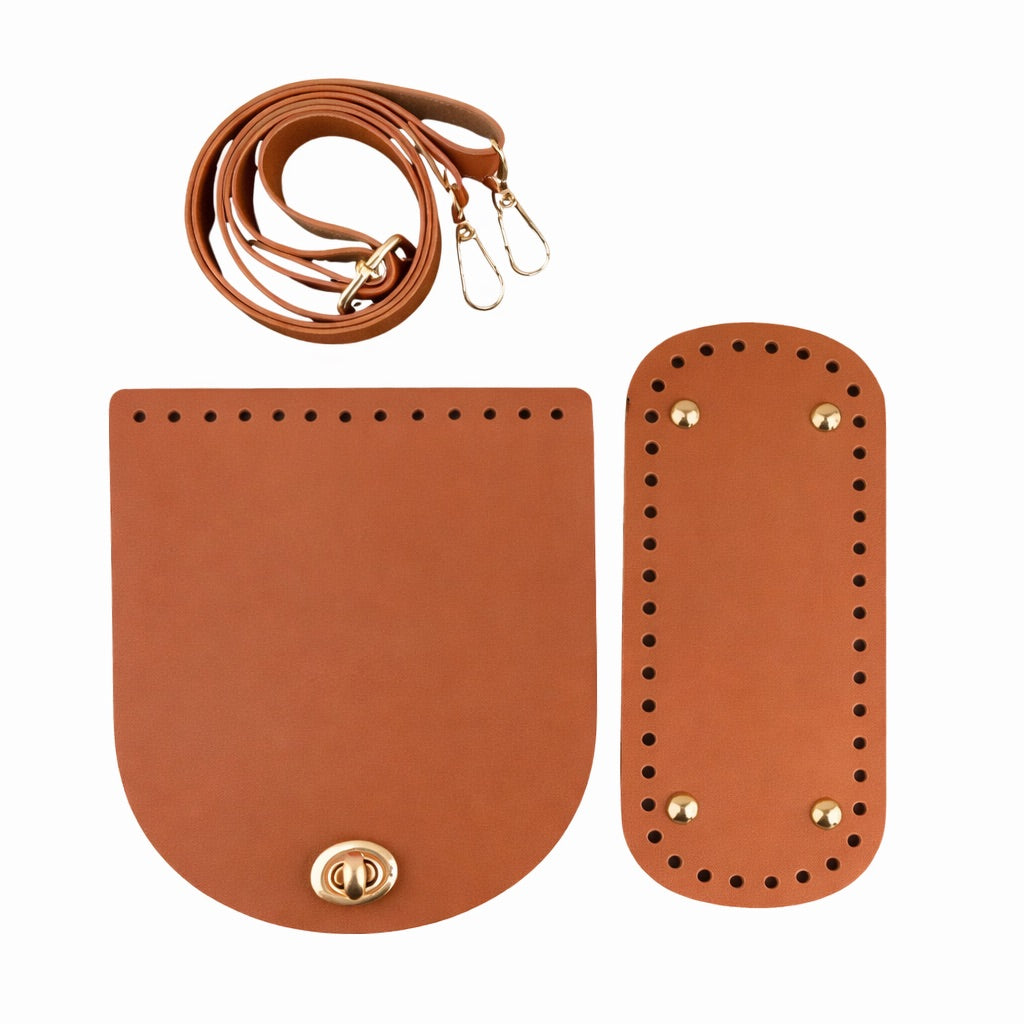 Incluye base perforada, correa ajustable y solapa de cierre, todo coordinado para que puedas construir tu bolso de forma sencilla y con un resultado elegante.